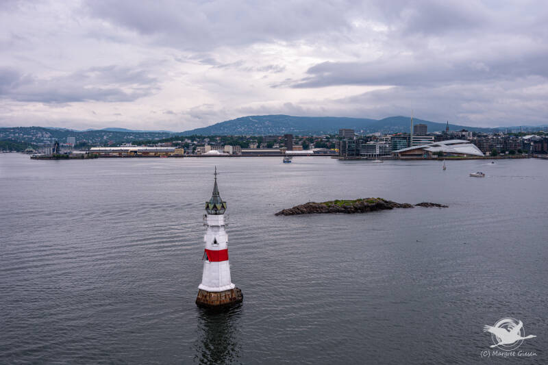 Am nächsten Morgen hatten wir noch genug Zeit für das Frühstück und danach konnten wir die Einfahrt in den Oslofjord genießen. Nur das Wetter war trübe – leichter Regen und recht frisch. (Eigentlich war das gutes Wetter, was wir aber noch nicht ahnten.)