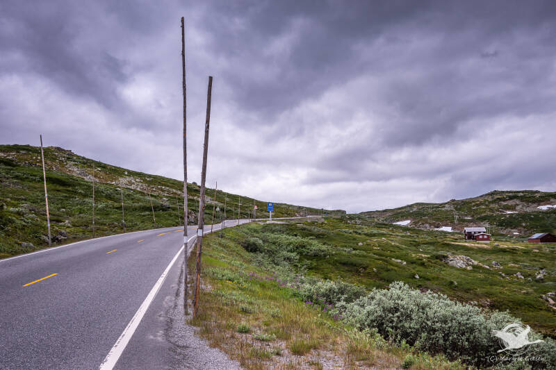 Unser erster geplanter Campingplatz lag nahe des Valdres Nationalpark, den wir aufgrund der verkürzten Reise nicht besuchen konnten. Auch die Valdresflye Landschaftsroute mussten wir leider auslassen. So war unsere erste Landschaftsroute am nächsten Morgen die Straße durch den Hardangervidda Nationalpark.