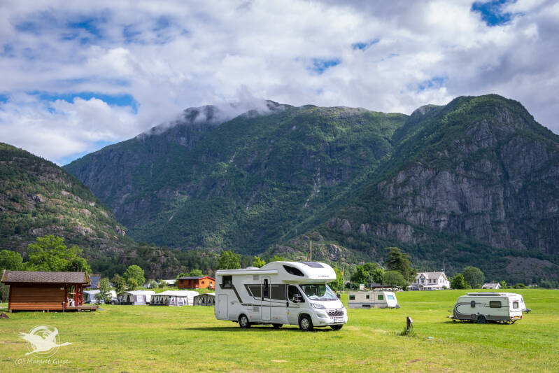 Unser Campingplatz Djuvic Camping am Sognefjord war ein Traum und das abendliche Wetter stimmte uns versöhnlich. Zum ersten Mal erlebten wir das charakteristische Camping auf regulären Campingplätzen in Norwegen: die Stellrichtung ist meist mit Frontscheibe zum Fjord. Sitzt man also abends gemütlich auf den Vordersitzen hat man immer den Blick auf den Fjord, was lustigerweise immer zu dem leichten Gefühl führt, man würde seekrank.