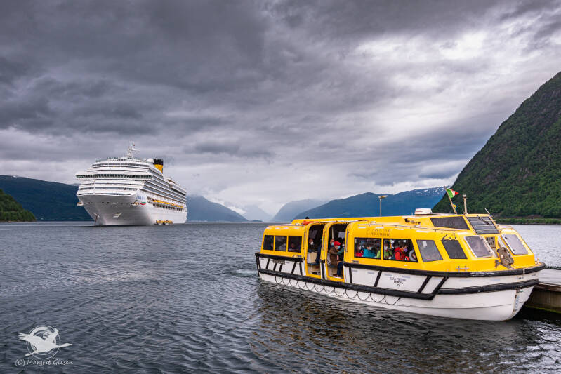 In Vikøyri angekommen, wurden gerade die Kreuzfahrttouristen mit Beibooten an Land gesetzt. Wo auch immer ein Kreuzfahrtschiff entladen wird, verdoppelt sich Zahl der Menschen im Ort. Göttergatte und ich waren uns einig, dass wir so niemals Urlaub machen möchten.