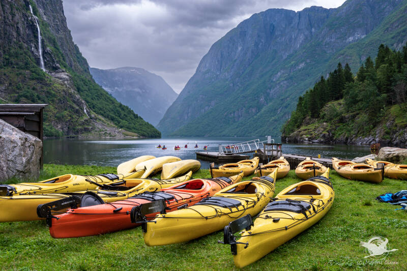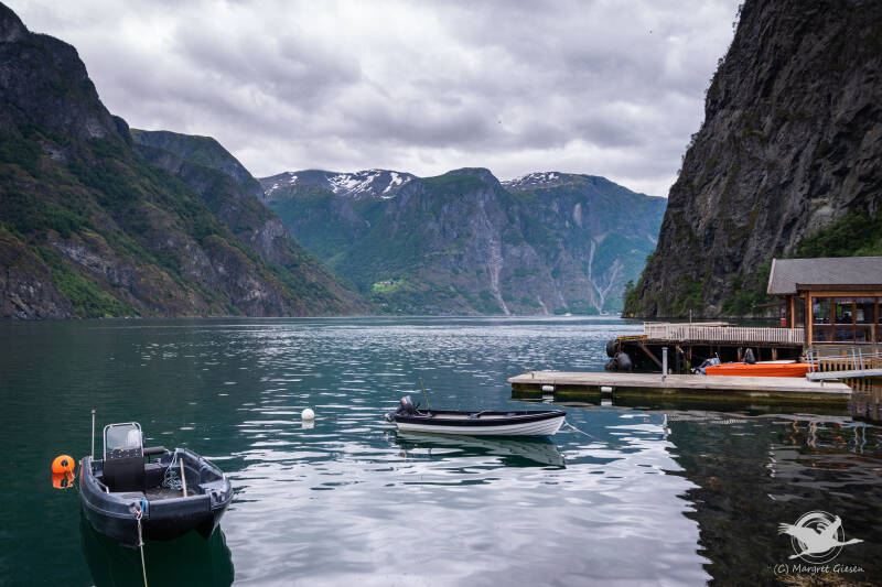 In Gudvangen angekommen, war es mal wieder trocken von oben, aber sehr kalt. Einige Touristen ließen sich trotzdem nicht von einer Kanutour auf dem Nærøyfjord abhalten. Wir gehörten nicht dazu.