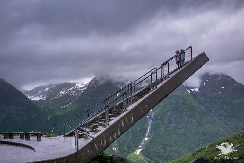 Das Besucherzentrum hatte leider geschlossen, da es durch eine Lawine im April 2022 teilweise zerstört wurde. Wir konnten froh sein, den Trollstigen überhaupt fahren zu können, da er auch bis in den Juni hinein noch gesperrt gewesen war.
